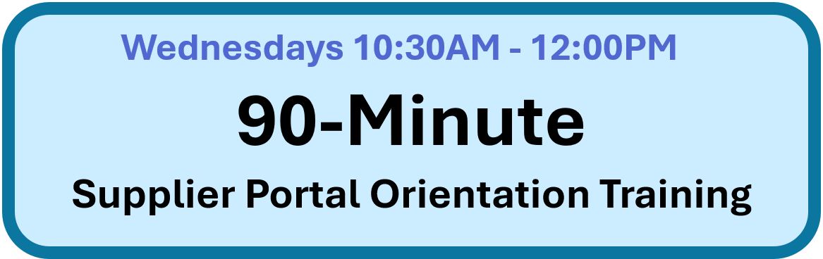 Wednesdays 10:30AM-12PM | Attend our New Supplier Portal Orientation Meeting, taking place each Wednesday from 10:30AM to 12:00PM |